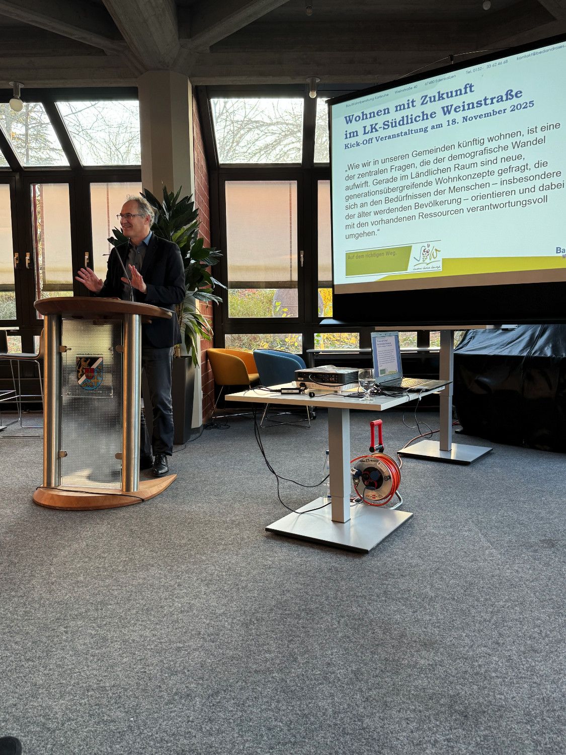 Am 18.11.2025 fand in Anwesenheit von Landrat Seefeldt unter der Überschrift "Wohnen mit Zukunft" eine Kick-Off Veranstaltung im Kreishaus des LK Südliche Weinstraße in Landau statt.